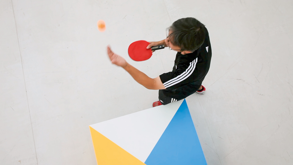 Within the framework of a modernist exhibition space, a standardized set of behavioral rules regarding objects of art is, in most cases, determined a priori. The stage-like space, amid which two minimalist sculptures rest in Final, also gives this impression. After a short exposition in slow camera shots, however, the nuances of the objects’ reception are, contrary to this set of rules, playfully ascertained. An athlete (Joy Zhou) comes from offstage and takes position to include the sculptures in a competitive match. With precision, he involves the objects in his competition, throws balls at them hard or strikes at them playfully from afar. Loud sounds of arrhythmic beats and thudding balls break the silence of the space and the untouchable appearance of the objects. In their transformation into sound-producing bodies and their functionalization as tables and a bizarre opponent, an unexpected change takes place: it seems as if the objects come to life and they reveal hidden qualities in an eventful lightness. Concept / Camera / Edited: Kay Walkowiak